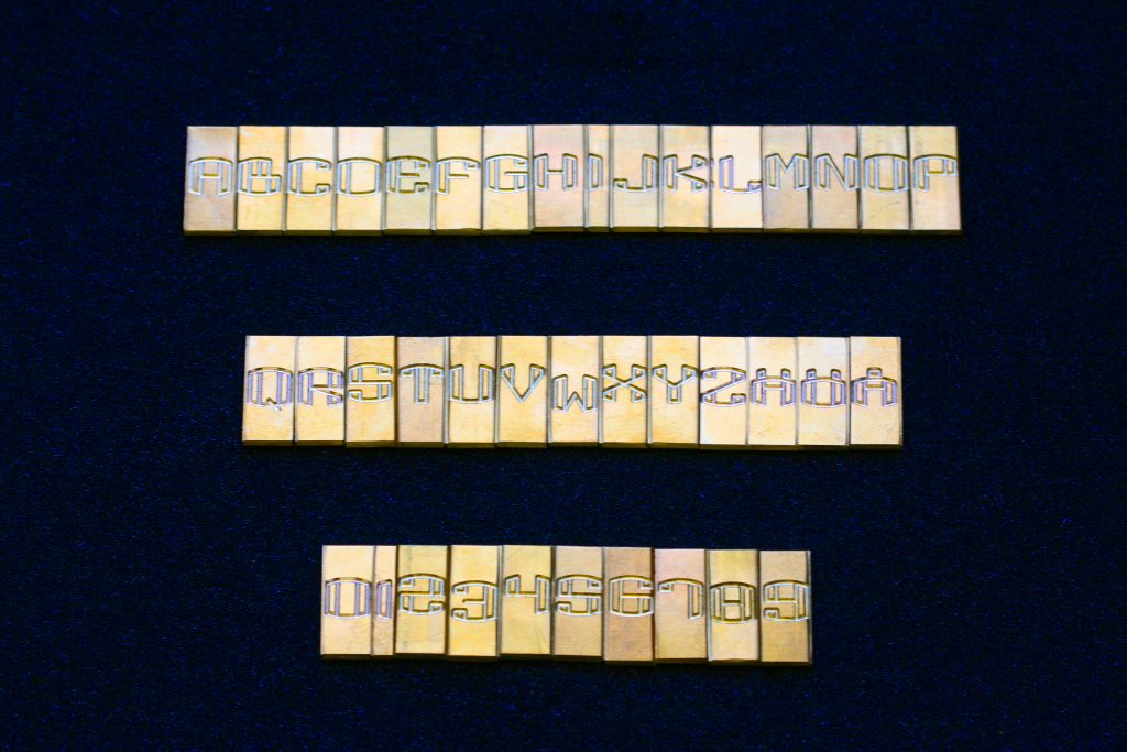 Suunnittelemani fontisto ja kaiverruslaatat kaiverruskoneelle