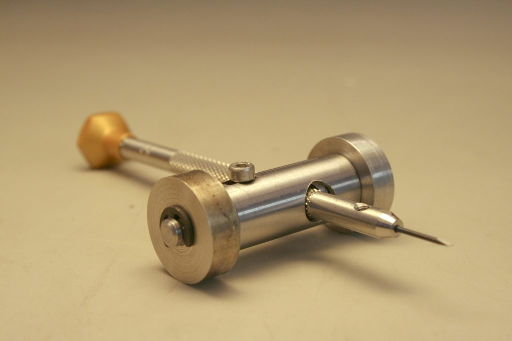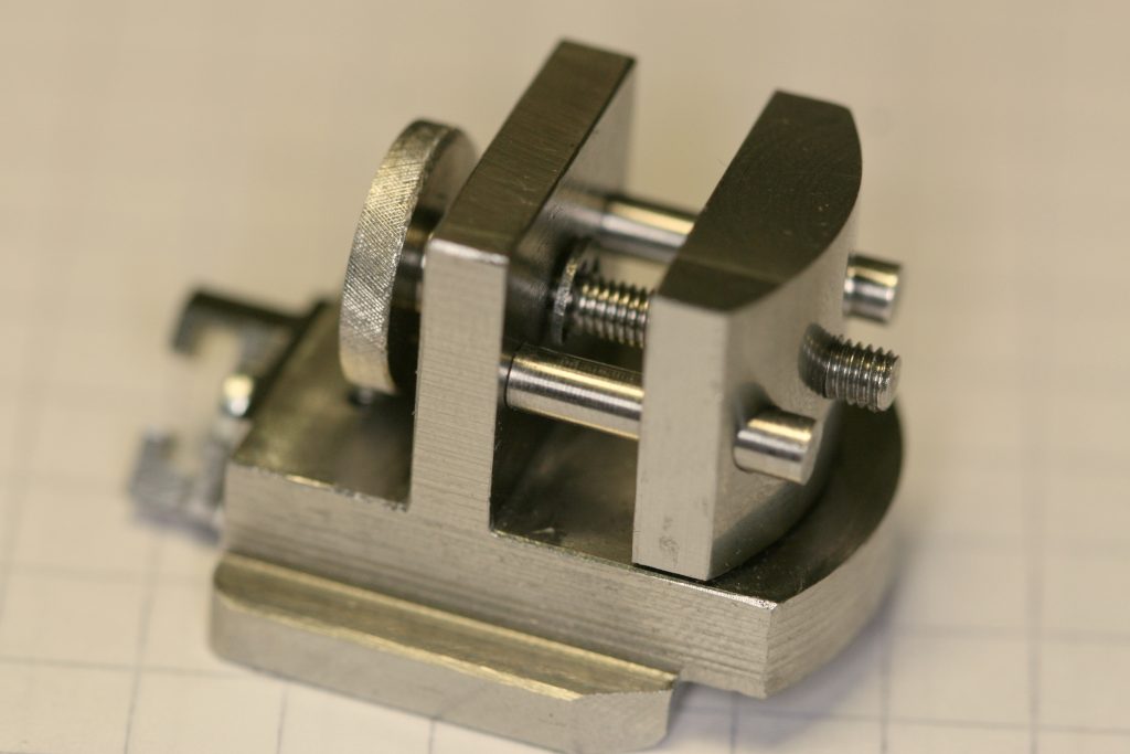 Elektronipyyhkäisymikroskoopin ruuvipenkki. Mittakaavana 7 millimetrin ruutupaperi.